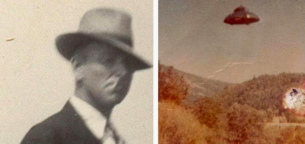 La imagen de la izquierda fue tomada el día de Año Nuevo en 1939 es un objeto no identificado que aparece en la parte superior izquierda. La imagen de la derecha muestra una imagen de un OVNI tomada en algún lugar de los EE.UU., el 10 de junio de 1964, y la foto fue descubierta en un ático varios años después.